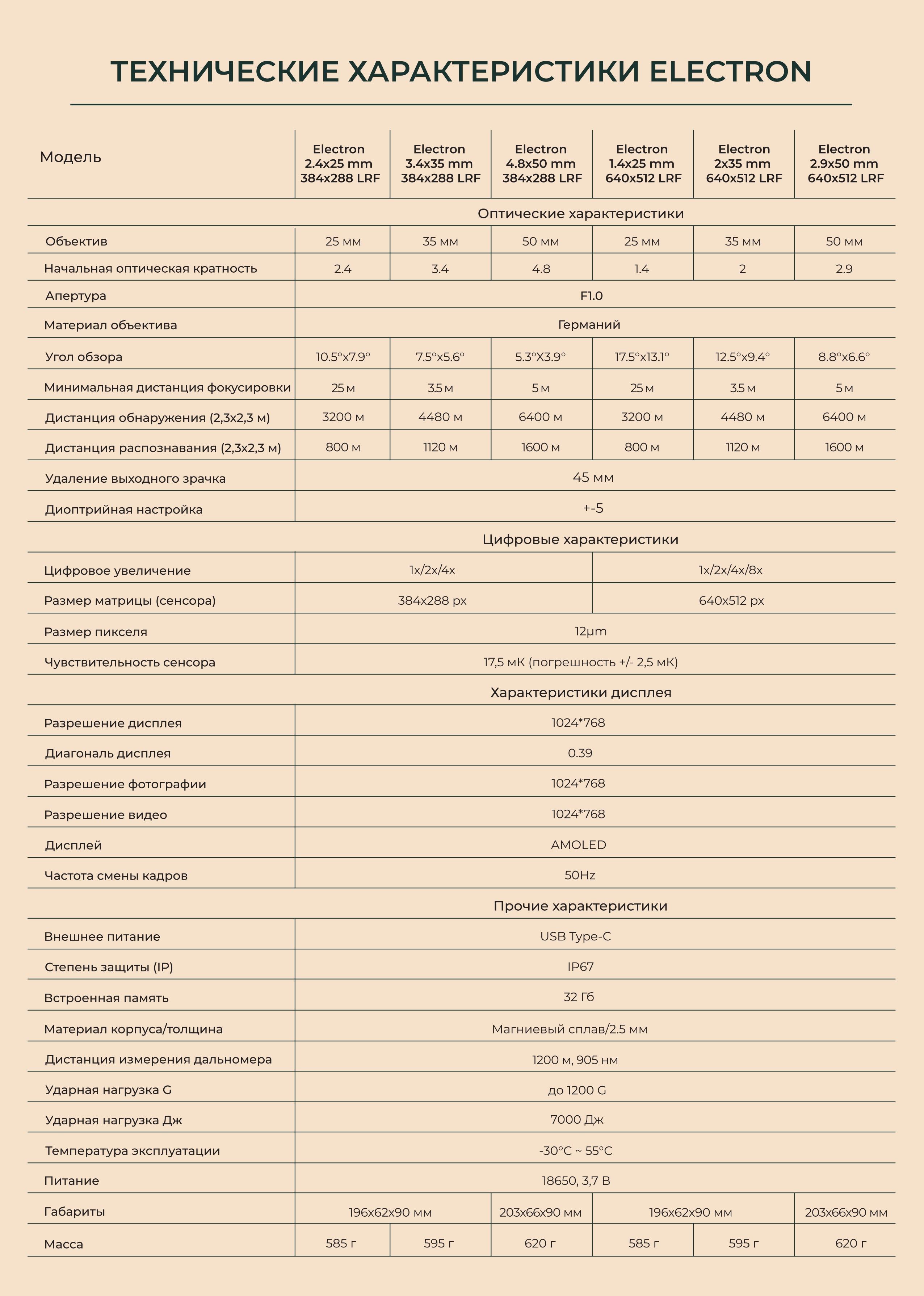 Комплектация ARTELV Electron 3.4x 35мм 384x288 LRF